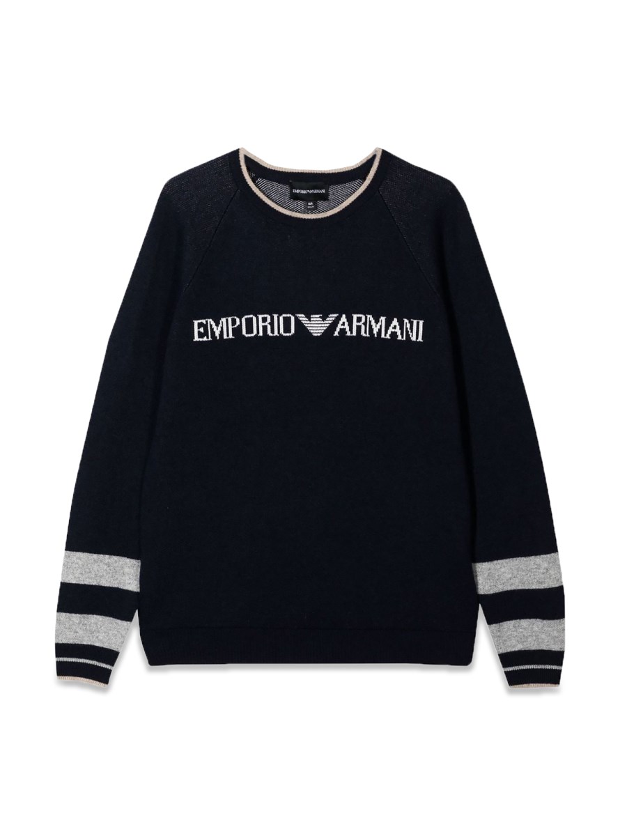 EMPORIO ARMANI PULL GIROCOLLO LOGO RIGHE SUI POLSI