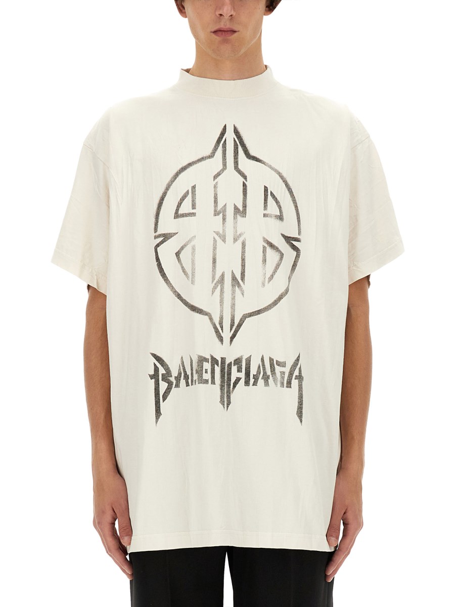 Scarpe / Italia / BALENCIAGA T-SHIRT METAL BB STENCIL OVERSIZE IN JERSEY DI COTONE in saldo