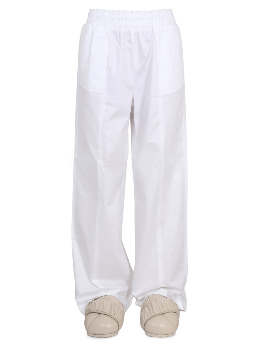 - ELASTICO IN VITA- DUE TASCHE LATERALI- WIDE LEG- 100% COTONE- LA MODELLA È ALTA 180 CM E INDOSSA LA TAGLIA 40 IT