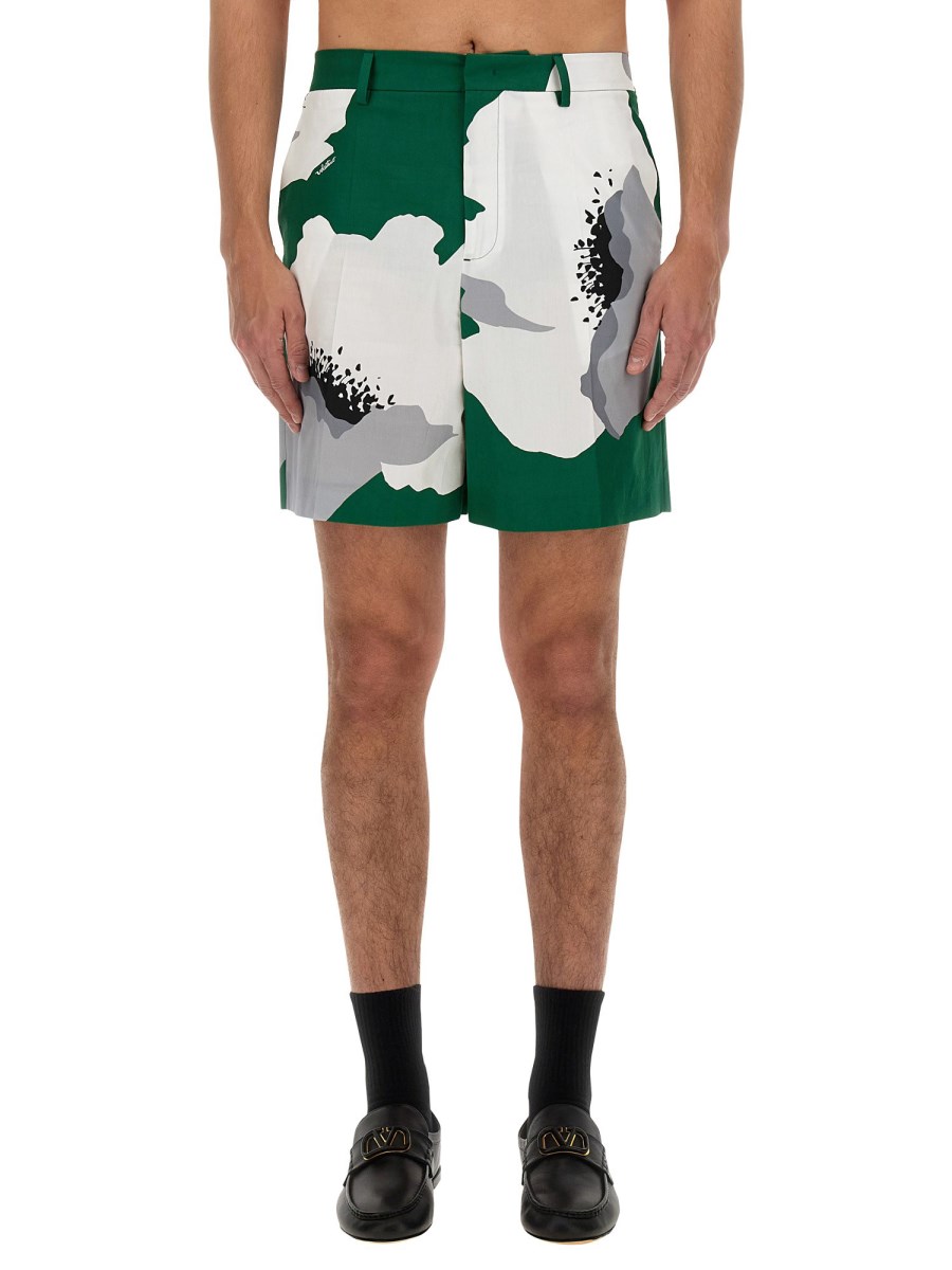 VALENTINO BERMUDA IN POPELINE DI COTONE CON STAMPA VALENTINO FLOWER PORTRAIT