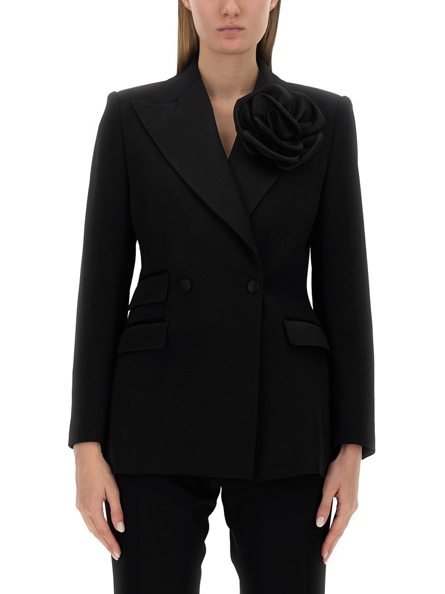 DOLCE & GABBANA GIACCA DOPPIOPETTO IN TELA DI LANA CON FIORE APPLICATO