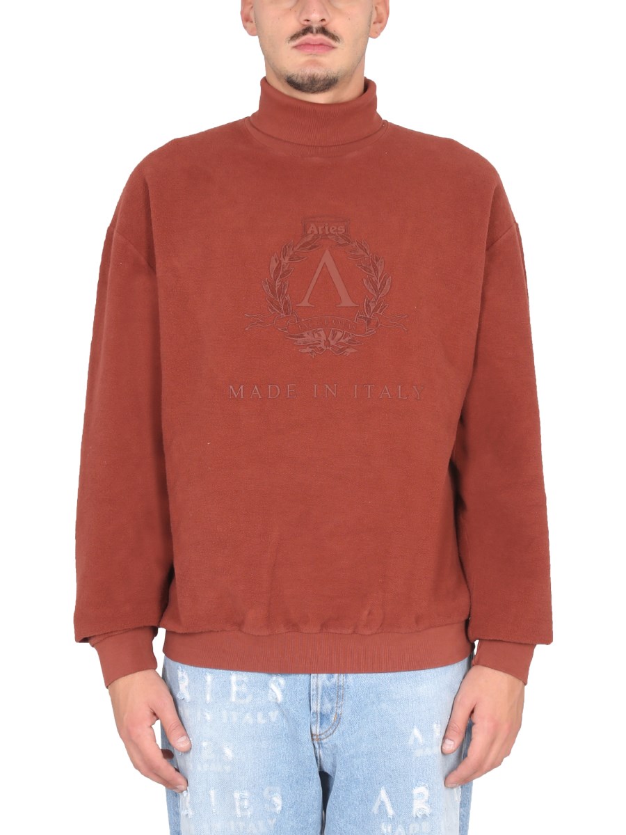 ARIES FELPA COLLO ALTO IN COTONE CON RICAMO LOGO