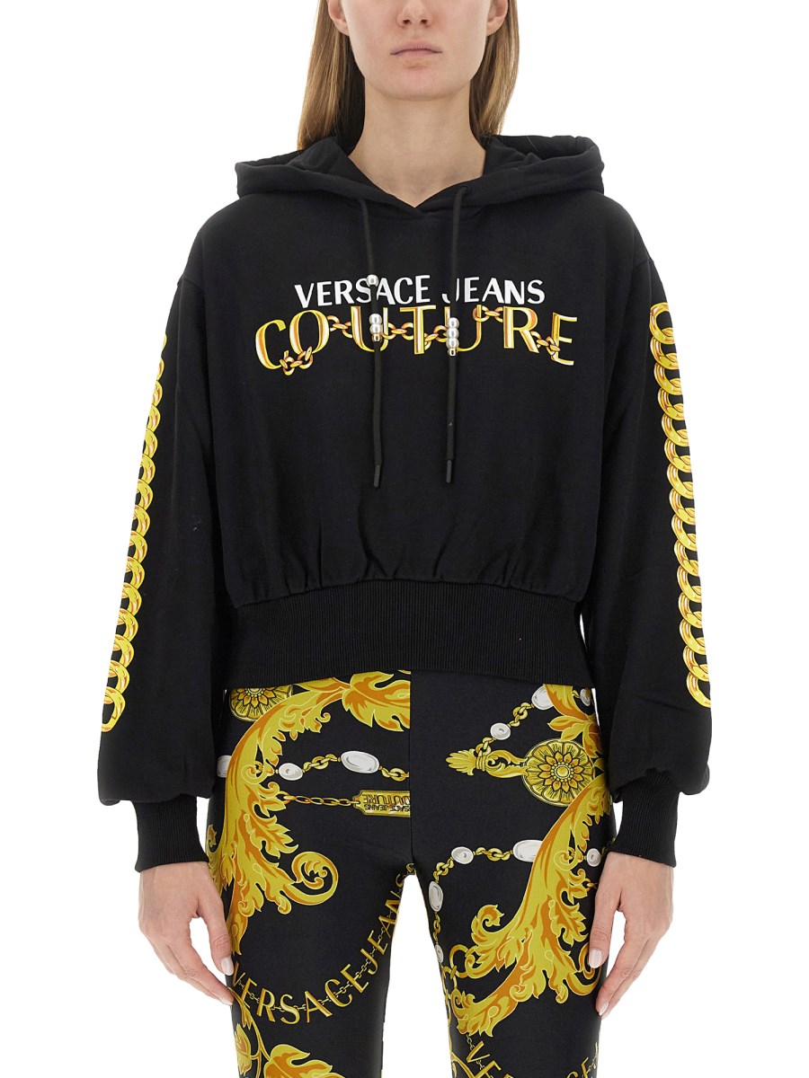 Scarpe / Italia / VERSACE JEANS COUTURE FELPA IN COTONE CON STAMPA LOGO in saldo