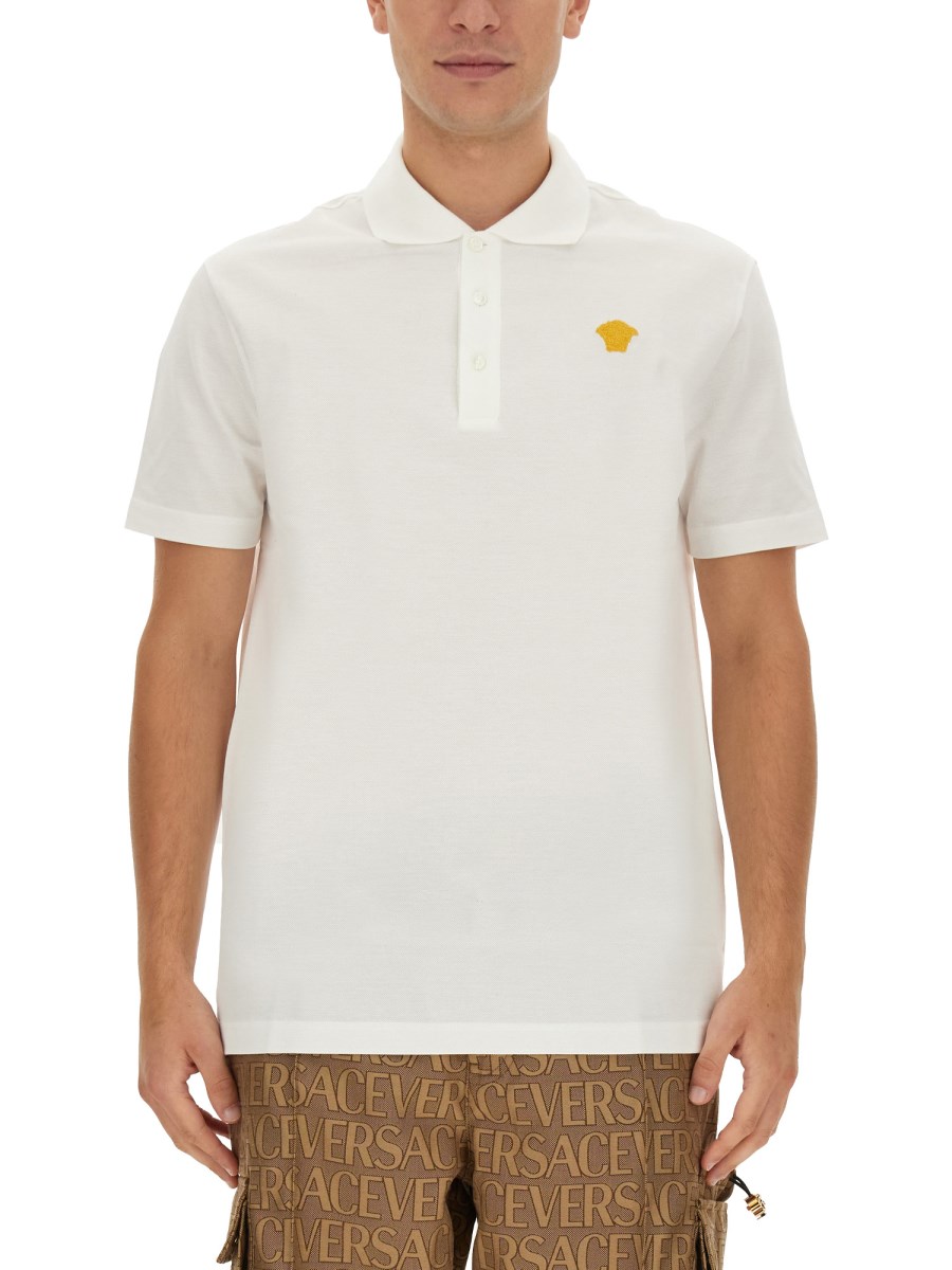 VERSACE POLO IN PIQUÊ DI COTONE CON PATCH LOGO in saldo | Scarpe