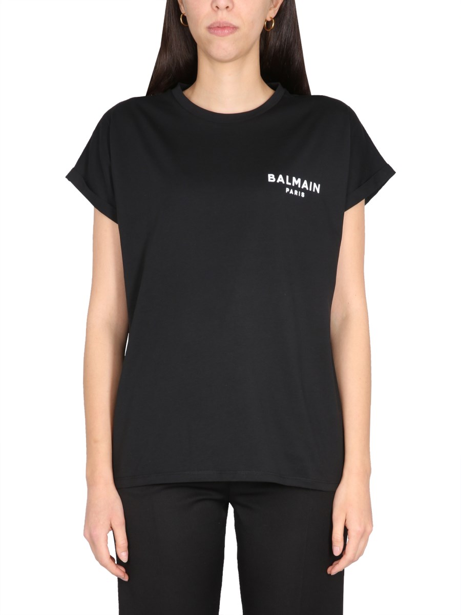 Scarpe / Italia / BALMAIN T-SHIRT IN JERSEY DI COTONE CON LOGO FLOCCATO in saldo