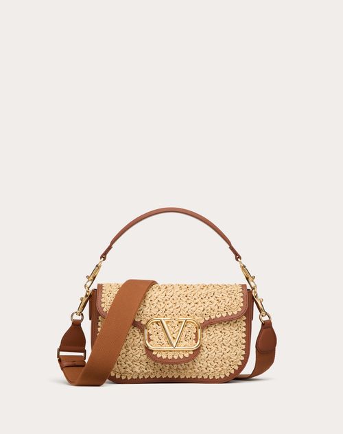 Borsa a spalla Valentino Garavani Alltime in rafia sintetica intrecciata con profili in pelle ed elemento VLogo Signature metallico. La borsa può essere indossata a spalla/cross-body o a mano grazie al manico amovibile e alla tracolla in nastro amovibile.- Parti metalliche finitura dorata- Chiusura magnetica- Manico in pelle amovibile- Tracolla in nastro regolabile e amovibile- Interno: una tasca piatta in pelle- Altezza (luce) tracolla: 53 cm- Dimensioni: W23,5xH16xD8 cm- Made in Italy