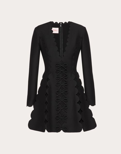 Abito Corto In Crepe Couture Ricamato - Crepe Couture (65%Lana Vergine, 35%Seta) - Foderato in Habotai (100% Seta) - Lunghezza 87 cm da punto spalla per la taglia 40 IT - Lunghezza manica 79,5 cm da centro dietro per la taglia 40 IT - La modella è alta 176 cm e indossa una taglia 40 IT - Made in ItalyIl look è completato con una borsa Valentino Garavani VLOGO MOON e scarpe Valentino Garavani Gentleglam.