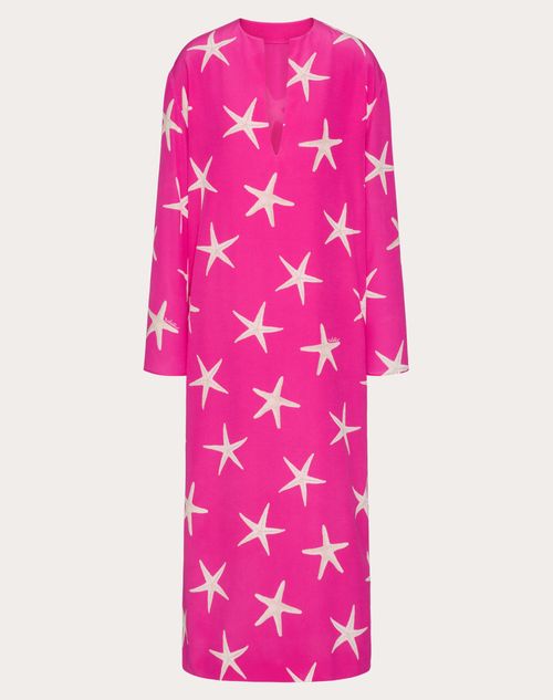 Abito Midi in Crepe De Chine Starfish - Scollo kaftano - Crepe De Chine Starfish (100%Seta) - Foderato in Georgette Stretch (91% Viscosa, 9%Elastan) - Lunghezza 130 cm da punto spalla per la taglia 40 IT - Lunghezza manica 81 cm da centro dietro per la taglia 40 IT - La modella è alta 176 cm e indossa una taglia 40 IT - Made in ItalyIl look è completato con una borsa Valentino Garavani Escape Collection 2024 e scarpe Valentino Garavani Escape Collection 2024.
