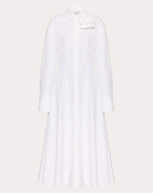 Chemisier Valentino in Compact Popeline - Scollo camicia - Dettaglio Rosa applicato - Chiusura frontale con bottoncini- Compact Popeline (100%Cotone)- Sfoderato- Lunghezza 130 cm da punto spalla per la taglia 40 IT- Lunghezza manica 85 cm da centro dietro per la taglia 40 IT- La modella è alta 176 cm e indossa una taglia 40 IT- Made in ItalyIl look è completato con una borsa Valentino Garavani Locò e scarpe Valentino Garavani Valentino Garavani Tan-go.