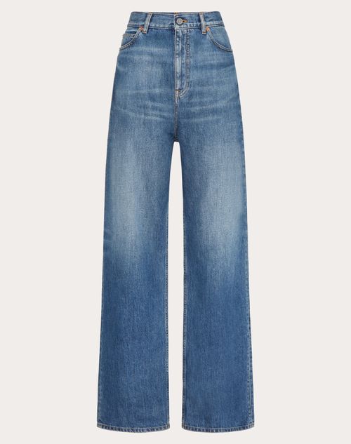 Pantaloni in Medium Blue Denim - Medium Blue Denim (100%Cotone) - Sfoderati - Lunghezza 110 cm da punto vita per la taglia 26 IT - Fondo gamba 26 cm per la taglia 26 IT - Lunghezza interna della gamba 79 cm per la taglia 26 IT - La modella è alta 176 cm e indossa una taglia 26 IT - Made in ItalyIl look è completato con una borsa Valentino Garavani VLOGO MOON e scarpe Valentino Garavani Fussfriend.