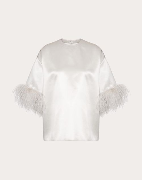 Top in Satin De Soie - Ricamo di piume - Chiusura posteriore con gancino - Satin De Soie (100%Seta) - Foderato in Georgette Stretch (91% Viscosa, 9%Elastan) - Lunghezza 65 cm da punto spalla per la taglia 40 IT - Lunghezza manica 44 cm da centro dietro per la taglia 40 IT - La modella è alta 176 cm e indossa una taglia 40 IT - Made in ItalyIl look è completato con scarpe Valentino Garavani VLogo Locker.