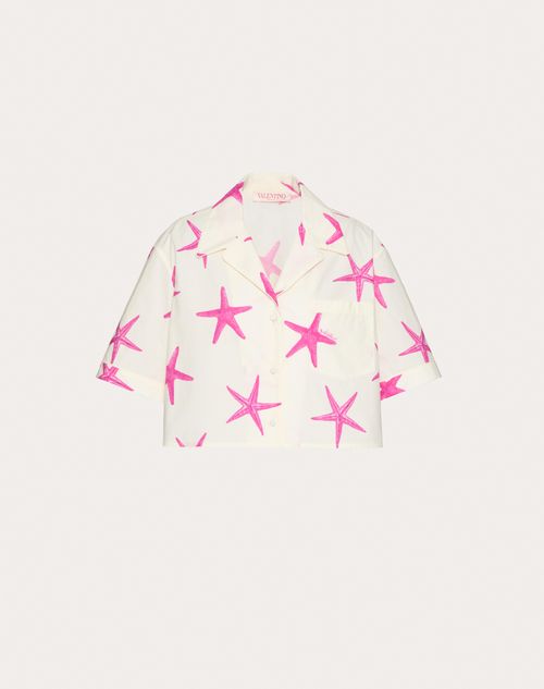 Camicia in Popeline Starfish - Chiusura frontale con bottoncini - Popeline Starfish (100%Cotone) - Sfoderata - Lunghezza 45 cm da punto spalla per la taglia 40 IT - Lunghezza manica 49,5 cm da centro dietro per la taglia 40 IT - La modella è alta 176 cm e indossa una taglia 40 IT - Made in ItalyIl look è completato con scarpe Valentino Garavani Escape Collection 2024.