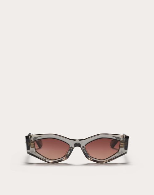 III - Occhiale da sole asimmetrico in acetato con VLogo.Nata da un paesaggio onirico, intrisa di eleganza e inclusività, la nuova COLLEZIONE VALENTINO EYEWEAR riafferma la scelta di autenticità e la tradizione couture della Maison attraverso la cura artigianale giapponese.CARATTERISTICHE - Occhiale da sole asimmetrico in robusto acetato giapponese intagliato di colore grigio traslucido.- Aste in acetato con estremità intagliate, stud in titanio color oro bianco. - Tag RFID sull'estremità inferiore dell'asta sinistra.- Lente base 4 da rosa scuro a rosa chiaro con contrasto elevato CR-39.- Protezione UV 100%.- Predisposizione per lenti graduate.- Occhiali da sole da donna.- Realizzato a mano in Giappone.PACKAGING- Custodia in pelle riciclata con tracolla e panno per la pulizia.DIMENSIONI- Lunghezza aste: 14,5 cm- Larghezza totale Occhiale da sole: 14,2 cm- Larghezza lenti: 5,1 cm- Altezza lenti: 3,2 cm- Ponte: 2 cm