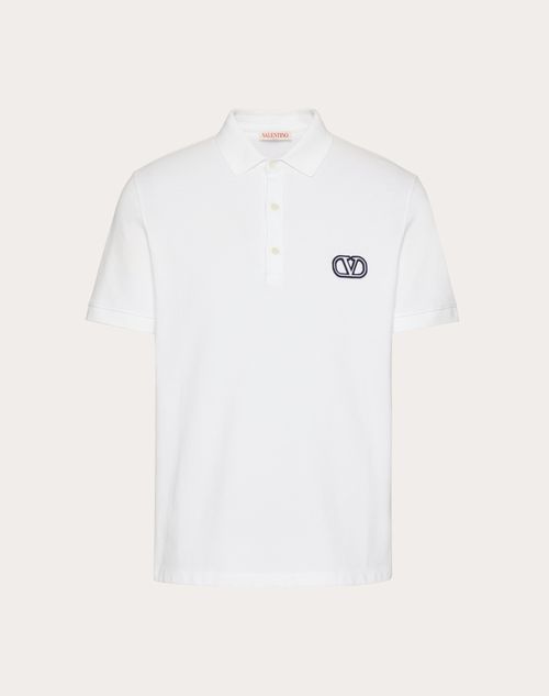 Polo Valentino in piquet di cotone con patch VLogo Signature- Regular fit- Patch VLogo Signature ricamato sul petto lato sinistro indossato- Colletto e orlo maniche a coste- Composizione: 100% Cotone- Lunghezza: 70 cm dall'attaccatura posteriore del collo in taglia M- Il modello è alto 187 cm e indossa una taglia M- Made in Italy.Il look è completato con scarpe Valentino Garavani One Stud.