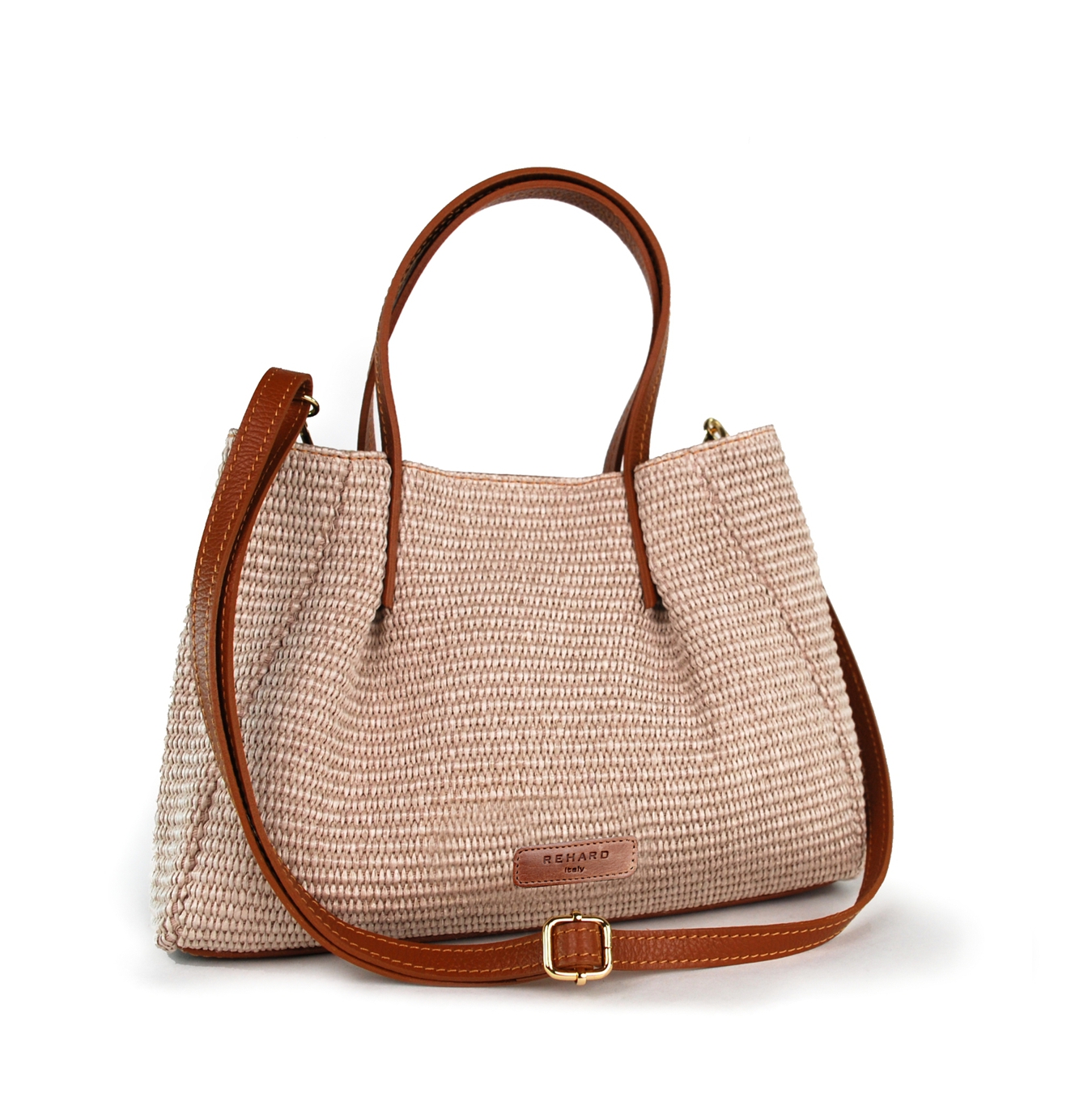 Ampia e pratica borsa dalla lavorazione intrecciata in raffia con lavorazione artigianale a mano che conferisce un valore di pregio, dettagli in vera pelle, molto resistente che si presta a una facile pulizia.Perfetta day & night, è un accessorio che ben si abbina sia a look basici da giorno sia ad outfit più eleganti. Interno foderato